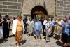 congregados en la plaza, comenzó con pasacalles en compañía de los vecinos hasta la casa del sr. alcalde, continuando hasta la iglesia, en la que pepe ofició la misa.